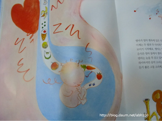 탯줄을 통해.. 사과도 먹고, 당근, 딸기, 아이스크림도 먹고.. 엄마의 심장소리를 노래삼아