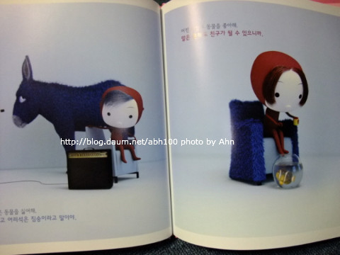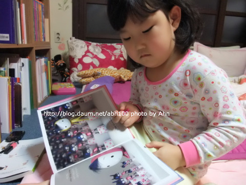 책 속의 두 주인공들인 인형들이 예뻐서 책을 집중하는 건지..