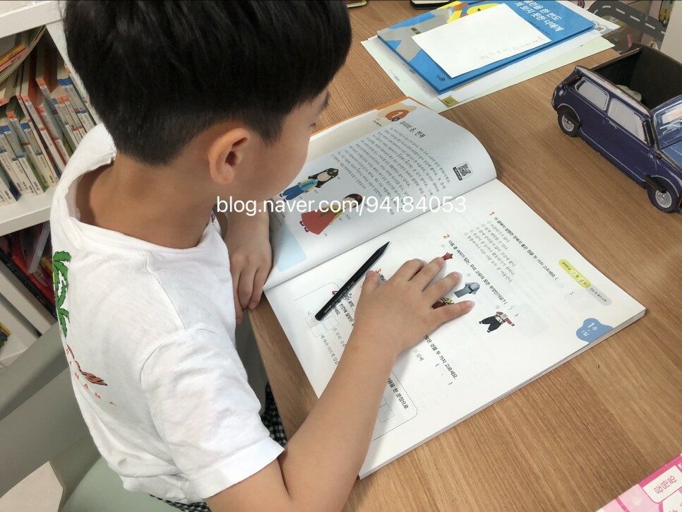 아이가 스스로 읽고 문제도 풀어본다.