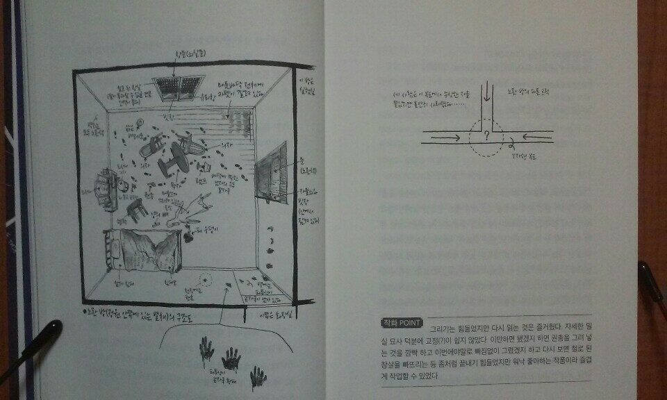 그런 수고를 덜어주기 위해 그림으로도 밀실의 상황을 설명해 주기 때문에 이해하기 쉽도록 되어 있습니다.