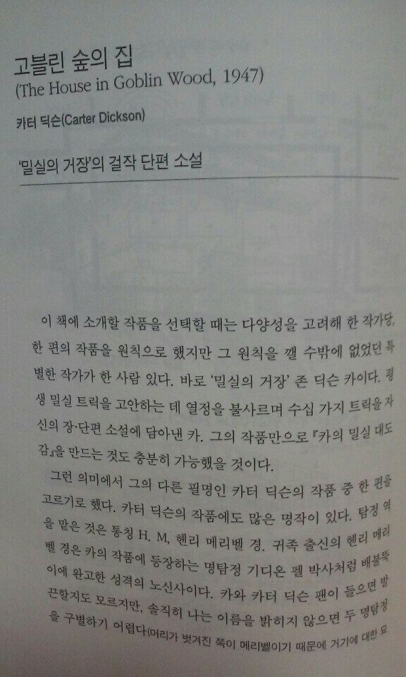 밀실 미스터리에 관심이 있고 어떤 책을 읽으면 좋은지 안내받고 싶으신 분이라면 이 책이 도움이 될 것이라 생각합니다.