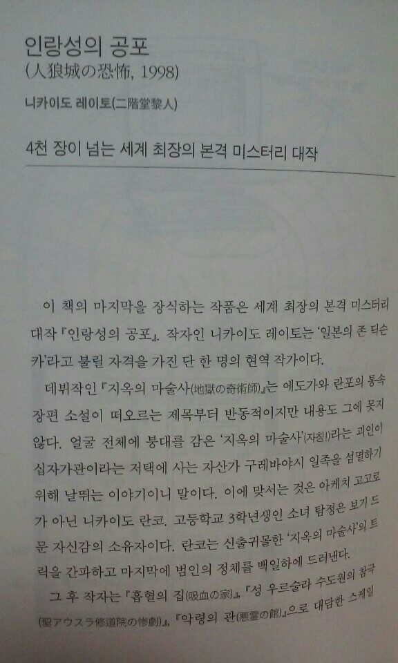 책의 최후반부에 나오는 니카이도 레이토라는 작가가 쓴 '인랑성의 공포'입니다.