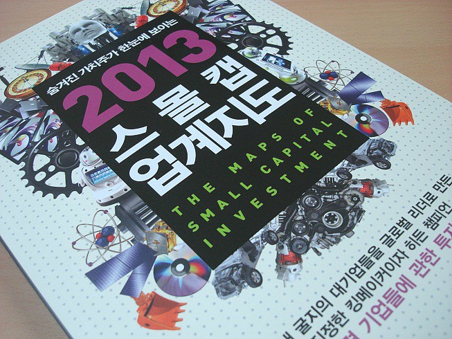 작년에 출판된 2012 스몰캡 업계지도[http://shhwang2007.blog.me/60144999906]의 2013년도 판이다. 지난 2012년도 서적과 비교하여 엄청나게 방대해진 양에 놀랐다. 또한 새로 삽입한 실제 사진도 박진감을 더해주는 듯 싶다. 올 한해는 스몰캡의 한해가 아니었나 싶다. 코스닥에서 웬만한 실적 좋은 회사는 100-200% 상승을 맛본 한해였지 싶다. 아직도 업계에서는 2013년도에도 스몰캡에 주목하고 있는 이 시점에서 투자자들에게 넓게 보는 눈을 가지게 해주는 책이라 많이 반가운 마음이다.