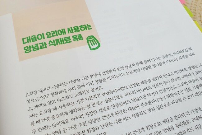 또 좋았던 부분은, 대슬이 엄마가 대슬이 요리에 사용하는 양념과 식재료 목록, 매장 추천 물품에 대한 내용이었다.