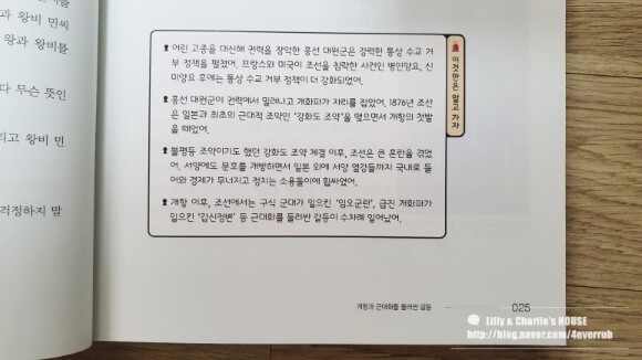 책 내용을 살펴보다 보니 외세로부터 침략을 받았을 때의 이야기만 정리된 페이지도 하나가 더 있더라구요 얼마나 많은 침략과 전쟁 그리고 싸움이 있었는지 이 한 페이지만으로 모두 다 설명이 되지는 않겠지만 그들이 우리를 얼마나 괴롭히고 힘들게 했을지 그리고 그것을 아주 큰 힘과 믿음으로 잘 버텨낸 우리 고려에 대한 생각을 더해 볼 수 있는 페이지였던 것 같아요