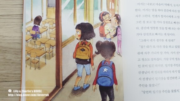 중간중간 만나는 재미있는 에피소드들 덕에 이야기는 점점 흥미로워지고 눈을 뗄 수 없게 되는데요 그 와중에 여진이와 미지의 적응기는 왠지모를 동병상련의 마음으로 읽어지는지 꽤나 심각한 표정도 자주 보이더라구요 아이들은 어떤 환경에서든 잘 적응하지만 그 과정에서 실제로오 어려움을 많이 겪게 되는 것 같아요 책 속의 여진이와 미지뿐 아니라 현실에서의 우리 아이들도 말이죠
