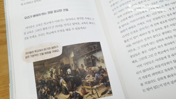 하지만 학교에서 배우는 교육은 지식 쪽에 가까운 것 같아요 이러한 질문들보다는 시험을 치고 또 이해도 그리고 성취도라는 이름들로 아이들을 비교하고 평가하는 그러한 교육이 일반적인 우리나라의 학교 교육이라고 느껴져요