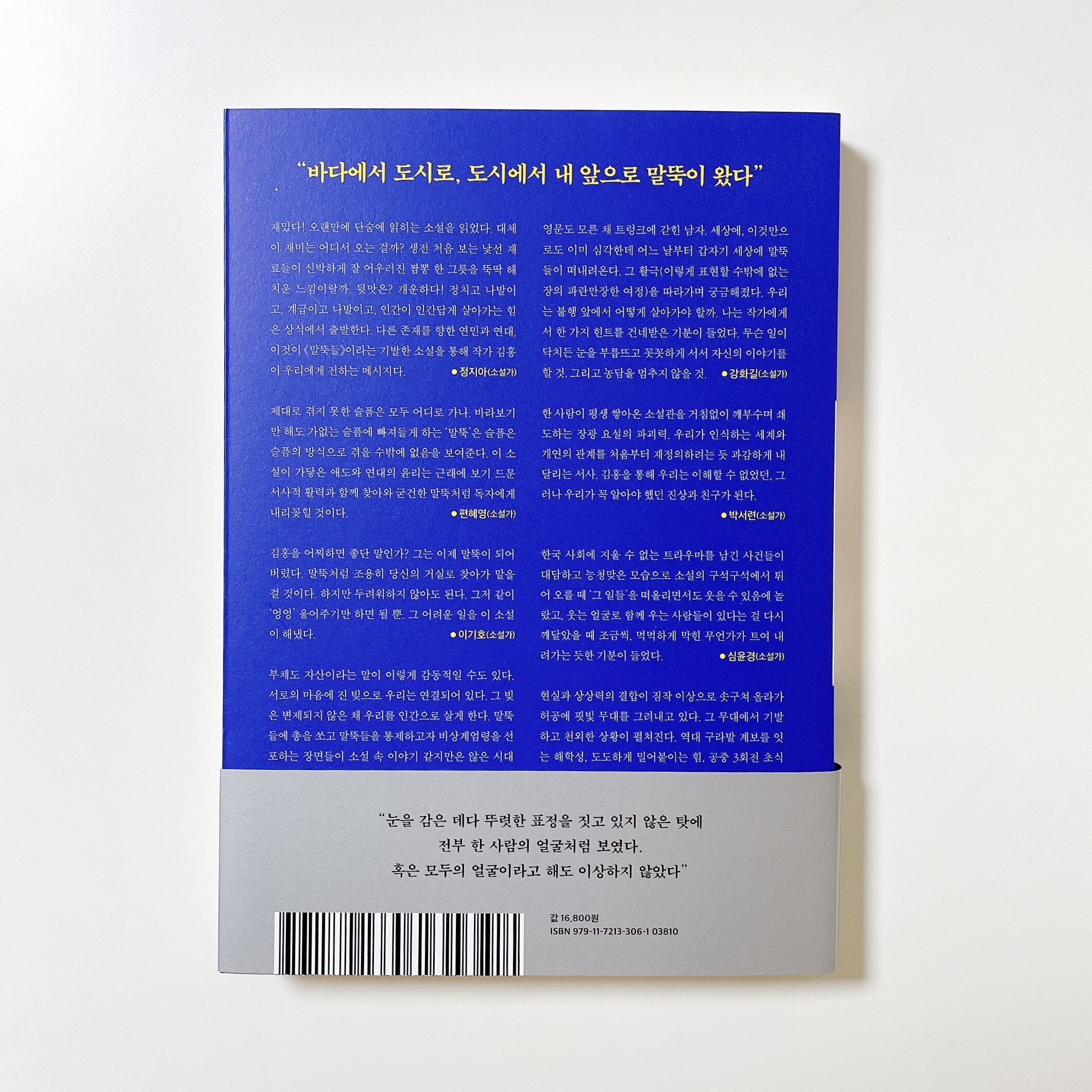 긴급재난문자와 국가 비상사태 선포, 라디오 프로그램 〈배철수의 음악캠프〉, 데이식스 콘서트, 광화문 광장 그리고 군인들. 정신없이 몰아치는 소설의 파란만장 속에 섞여 있는 요소들이 이야기에 현장감을 더한다. 정체를 알 수 없는 말뚝들과 ‘장’을 납치한 복면을 쓴 이들, 흰 방호복을 입은 사람들, 광장으로 모여든 시민들과 군인들. 불안에 떠는 이들과 진실을 알고 싶은 사람들, 진실을 감추려는 사람들이 한데 모여 자아내는 긴장감으로 한숨에 읽어가다 별안간 날아든 문장에 피식 웃음 짓게 되었던 책. 무엇보다 김홍 작가의 〈말뚝들〉은 우리 개개인과 한국 사회에 아픔으로 남아 있던 사건들이 이제는 이전과는 다른 모습으로 기억될 수 있겠다는 걸 보여준 작품으로도 오래 마음에 남을 듯하다.