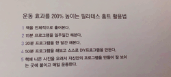 동작의 순서를 잘 몰라서 운동하는 중간 중간에 책을 펼쳐보면 운동