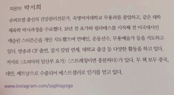 슈퍼모델 출신의 건강관리전문가. 숙명여자대학교 무용과를 졸업하고, 같은 대학 체육학 박사과정을 수료했다. 18년 전 요가와 필라테스를 시작해 전 미국대사인 캐슬린 스티븐슨을 개인 지도했으며 연예인, 운동선수, 무용예술가 등을 지도하고 있다. 방송과 CF 출연, 잡지 칼럼 연재, 대학교 출강 등 다양한 활동을 하고 있다. 저서로 <소피아의 임산부 요가> <스트레칭이면 충분하다>가 있다.