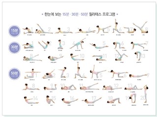 하지만 이책에는 15분·30분·50분 프로그램의 각 동작들을 한눈에 볼 수 있는 커다란 브로마이드가 삽입되어 있어 벽에 붙여놓고 수시로 운동하는 데 매우 편리합니다.