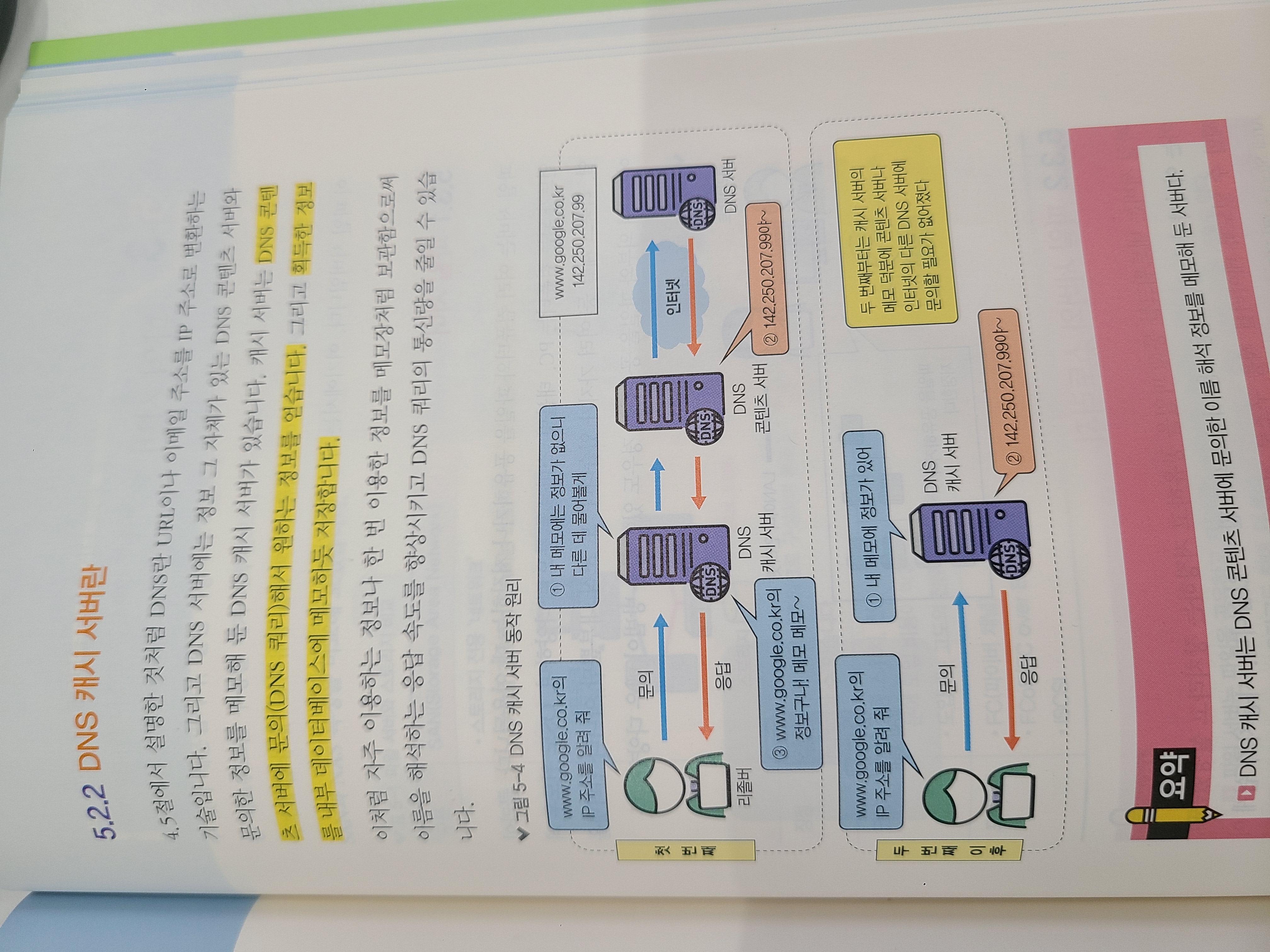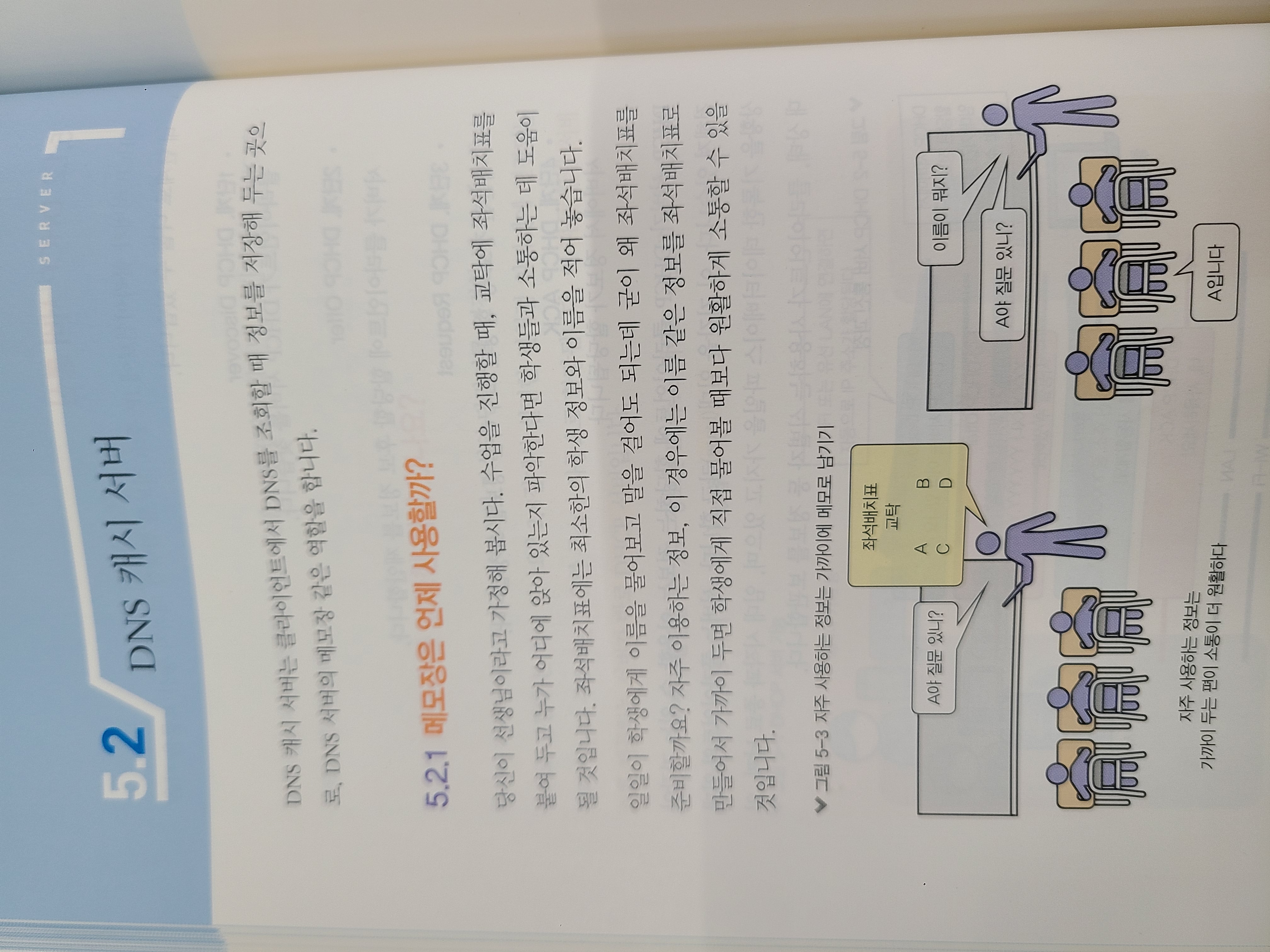 DNS 캐시서버에 대해 학교에서 선생님이 가지고 있는 학생들의 배치표를 비유하며 설명합니다.