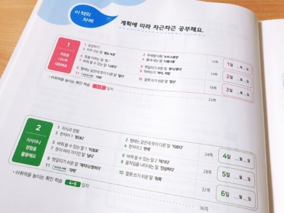 <초등국어 어휘왕>은 하루 2장 분량으로 차근차근 공부하다 보면 25일분량으로 완성하게 되는데요.