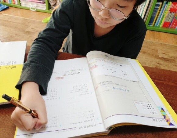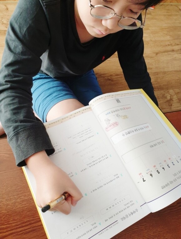하나하나 숫자를 나열해가며 풀어서 쓰는 초등남아예요.