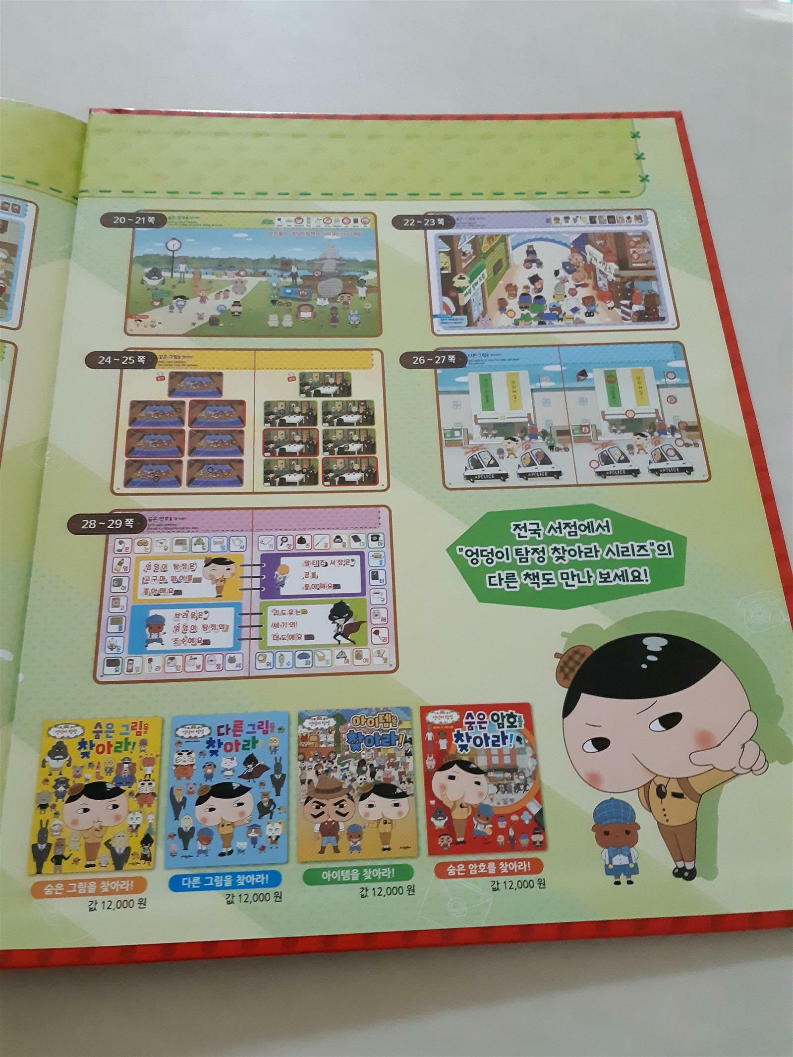 숨은 암호를 찾아라! 숨은 그림을 찾아라! 규칙을 찾아라! 같은 그림을 찾아라! 다른 그림을 찾아라! 길을 찾아라! 퍼즐 조각을 찾아라! 등등..찾아야 할게 많은 엉덩이 탐정 숨은 암호를 찾아라! 책이네요. 여러가지 찾아야 할게 많아서..애들 앞에서 못찾으면 어쩌나 걱정을 좀 했는데..다행히 책 뒷쪽에 정답이 나와 있어서 안심이 되네요.