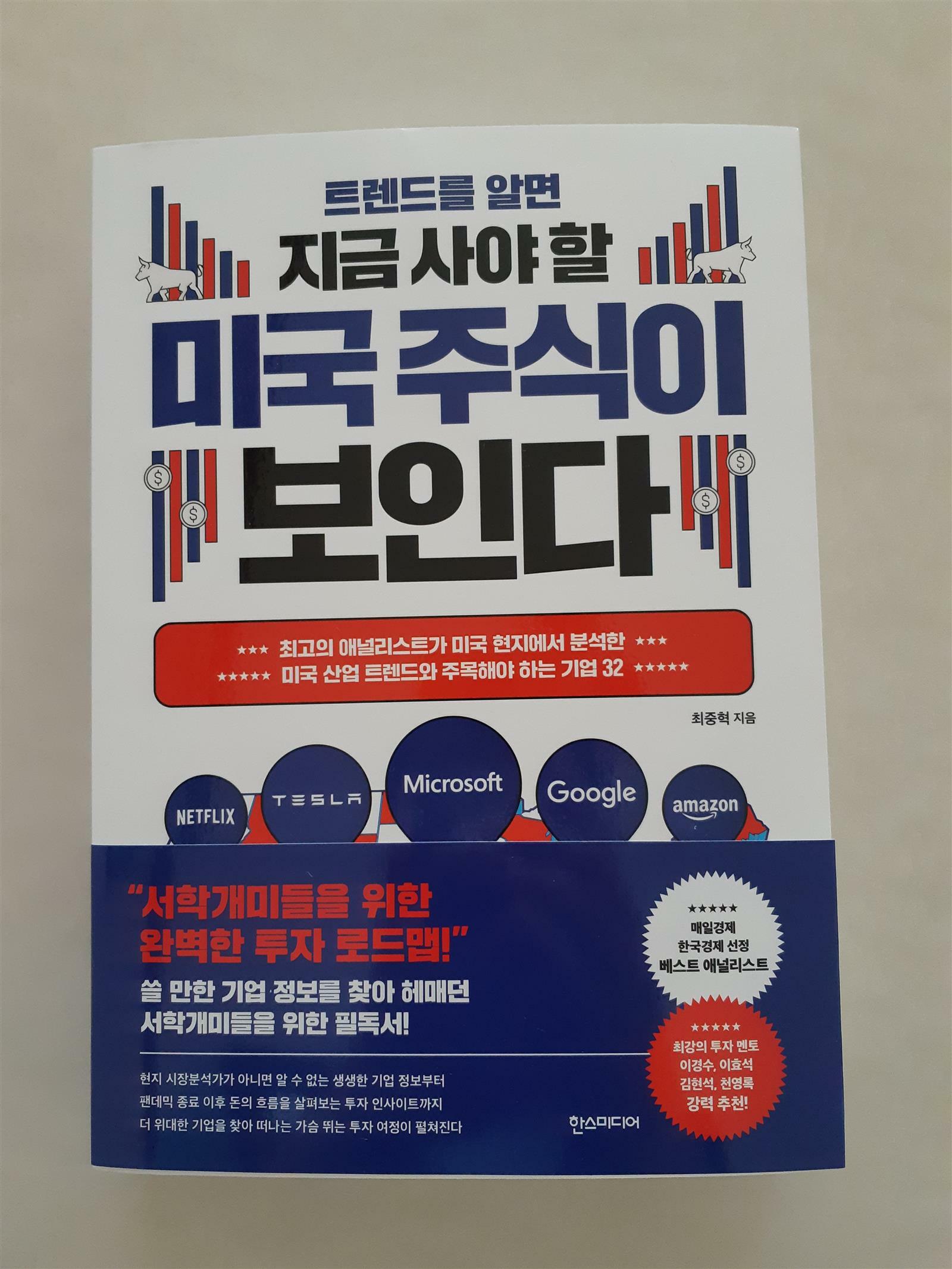 트렌드에 민감해야 하나? 생각을 했지만..책을 읽어보니 시대의 흐름만 잘 파악하면 책에서 애기하는 미국 주식이 눈에 보일 수 밖에 없네요. 책을 읽다가 저희 가족에게 유용한 정보도 많이 주네요. 저희 부부도 2~3년 내로 차를 교체해야 하는 상황인데..아무래도 미국에 영향을 많이 받는 우리나라이다보니 앞으로 친환경 정책에 따라 전기차 보급률이 가면 갈수록 높아질 예상이라서..저희 부부도 미래의 혜택이나 편리성을 따졌을때 전기차 구매를 해야겠어요. 테슬라는 워낙 유명해서 익히 알고 있는건 많았는데..GM의 전기차 산업에 대해서는 전혀 모르고 있었네요. 이렇게 적극적으로 전기차 사업을 추진하는지요~. 물론 여러 자동차 회사들이 전기차 개발에 박차를 가하고 있지만..과연 승자는 누가 될것인지? 그리고 테슬라 아성에 도전하고, 넘어서는 전기차 회사는 누가 될지? 너무 궁금하고, 미래가 재밌어질 것 같아요. 또 다른 미래가 재밌어질..이커머스..아마존은 익히 알고 있는 회사이지만..쇼피파이는 처음 알게 되어서 반갑고, 유용한 정보입니다. 미국은 이커머스 시장이 넓긴 하지만..이커머스 사용률은 낮은편이라고 들었는데..코로나 19로 인하여 상황이 많이 바뀌었네요. 얼마전 뉴스를 보니..일본에 이어 쿠팡이 미국도 진출한다고 하던데..앞으로 아마존의 아성을 누가 넘어설수 있을지? 기대가 많이 됩니다. 트렌드를 알면 지금 사야 할 미국 주식이 보인다..책은 여러모로 주식을 사야할때 많은 도움이 되는 책입니다. 그리고 더불어 미국 경제 상황도 알게 되어서 앞으로 재테크에도 도움이 될 것 같아요.
