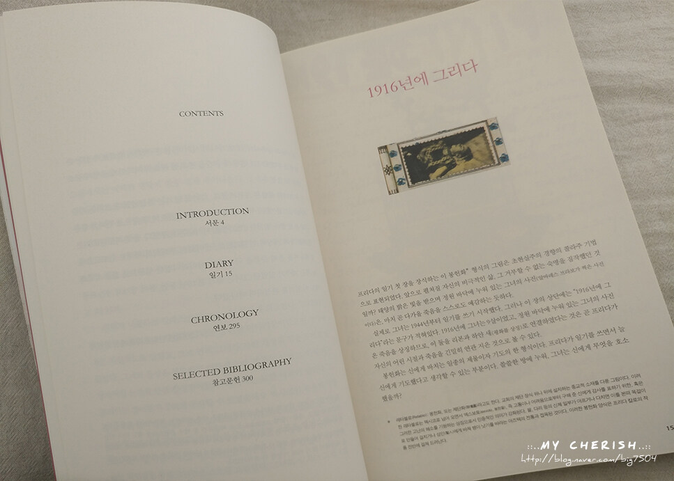 평소 엄청난 독서량을 보여주었다는 프리다 칼로는 그녀가 써왔던 일기 속에서 여지없이 드러나네요.