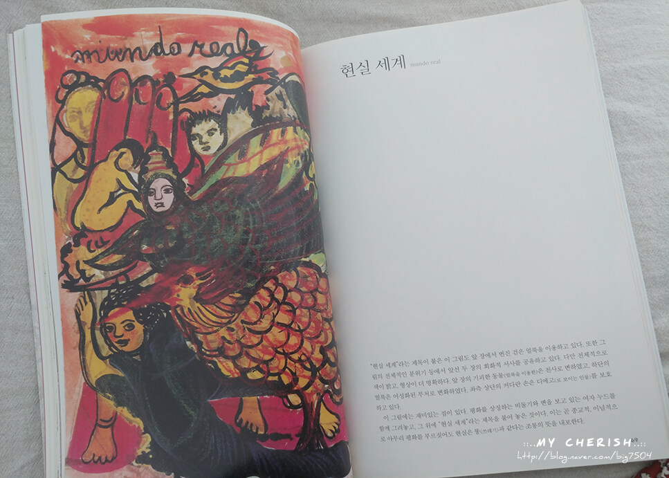 또한 그녀의 사상도 반영되어지고 고대 아즈텍 문명의 설화 혹은 신화를 혼합하여 자신만의 회화 언어를 만들어 내었어요.