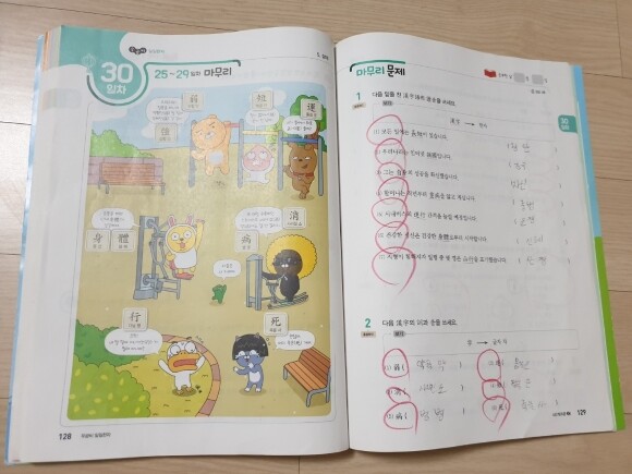 한자가 들어간 문제들을 이제는 제법 잘 풀어요.
