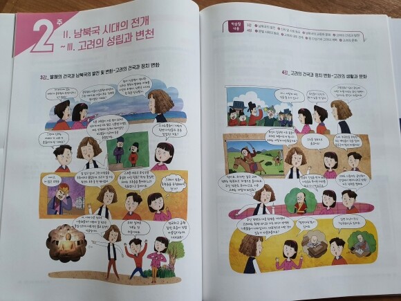 남북극과 고려 시대에서 배울 내용에 대한 설명이 만화로, 대화형식으로 나와서 배울 학습요소를 생각하면서 공부 할 수 있게 도와 주네요.