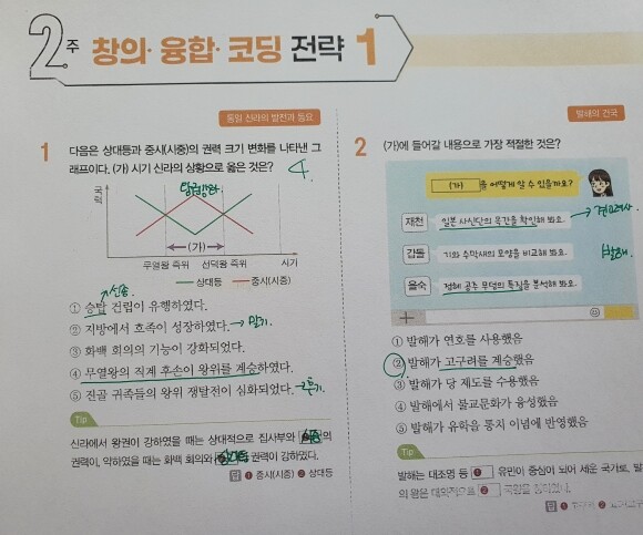 창의, 융합, 코딩 전략은 단순히 역사 지식만이 아니라 다른 부분의 교과를 통합한 문제들을 제공하여 융복합적 사고력과 문제 해결력을 기를 수 있도록 도와 줍니다.