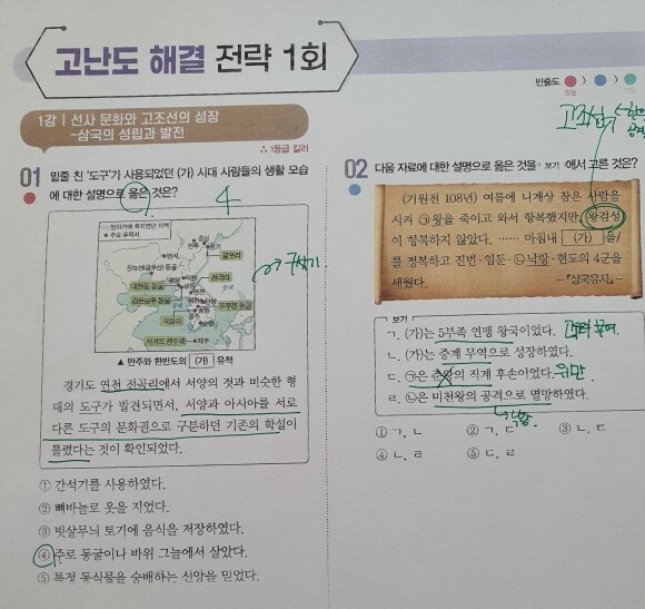 전체적으로 일등전략 중학 역사2를 보고 느낀 점은 시험 대비만을 위한 문제집이란 느낌이 들었습니다.