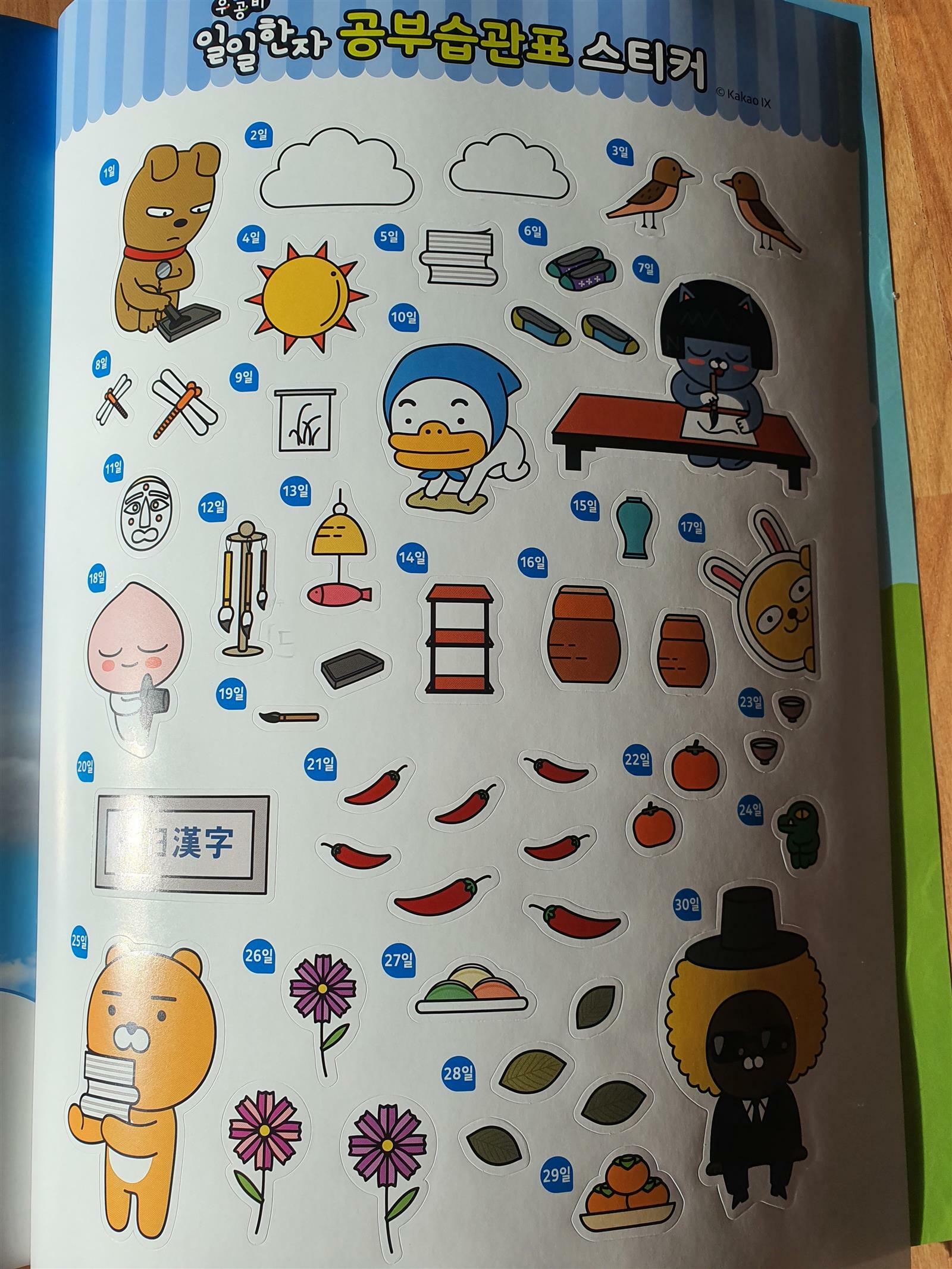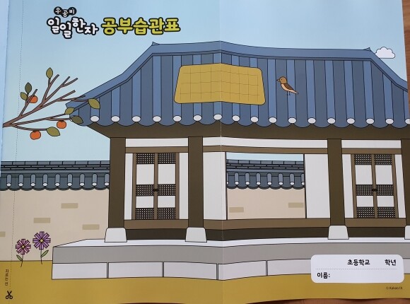 이번 스티커의 컨셉은 서당인 것 같네요. 저희 집 큰아들이 일일한자를 받자마자 자기가 푼다고 가져가 버렸습니다. 그리고 처음부터 꼼꼼하게 읽네요.