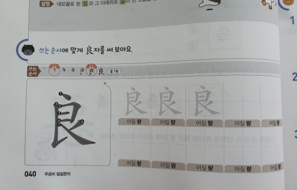 그리고 획순에 맞게 한자를 10번 써 볼 수 있게 구성되어 있어요.