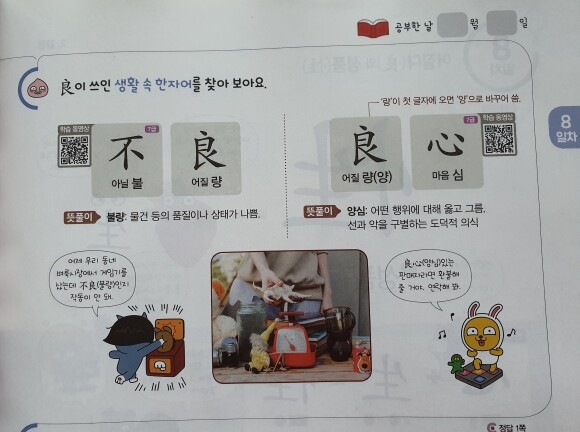 우공비 일일한자는 현단계와 아래 단계에서 배운 한자가 실생활에서 사용되는 경우를 카카오프렌즈의 대화를 통해 살펴 보기만 했는데, 어휘력이 강화됩니다.