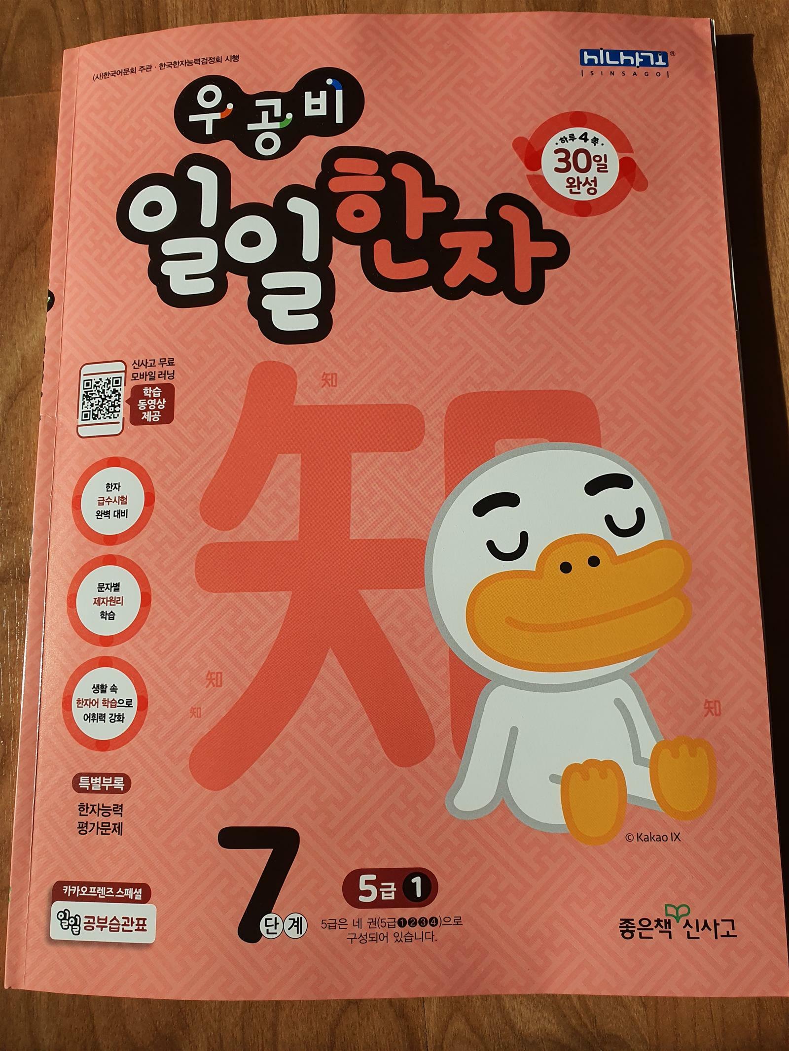 이건 원래 작은 아이 주려고 신청한 책인데, 갑자기 큰 아이가 일일한자로 5급 급수를 따고 싶다고 합니다. 그래서 8,9,10단계는 제가 사 주기로 했어요.