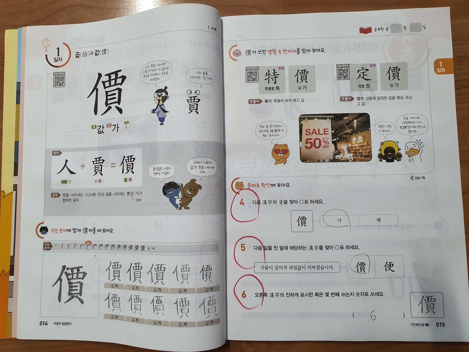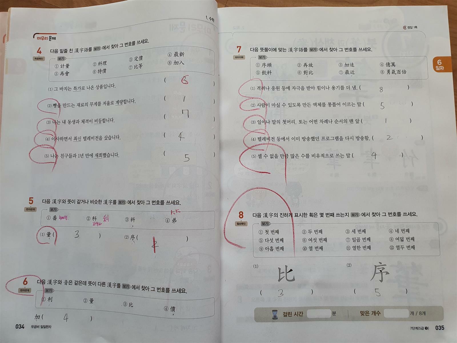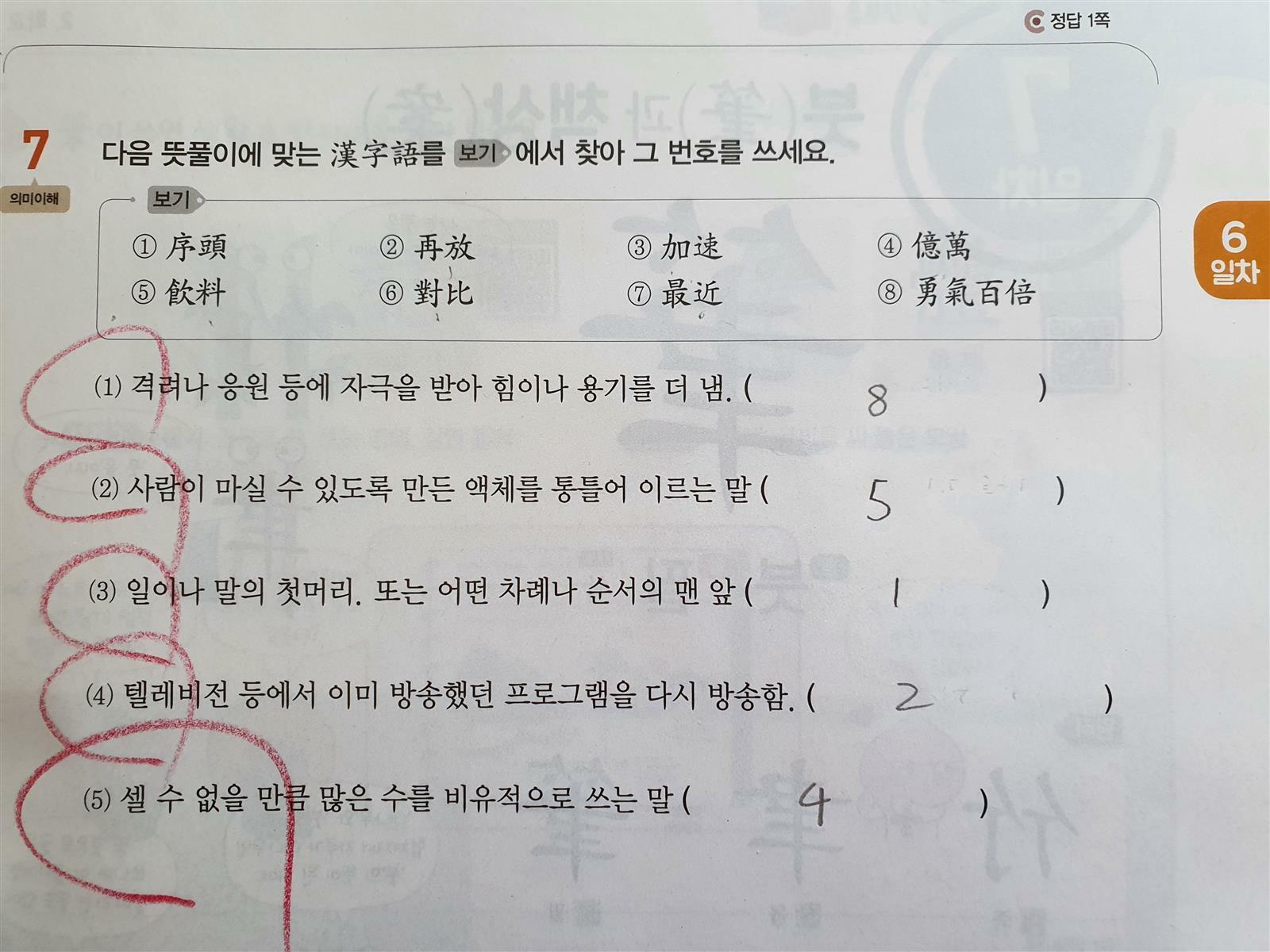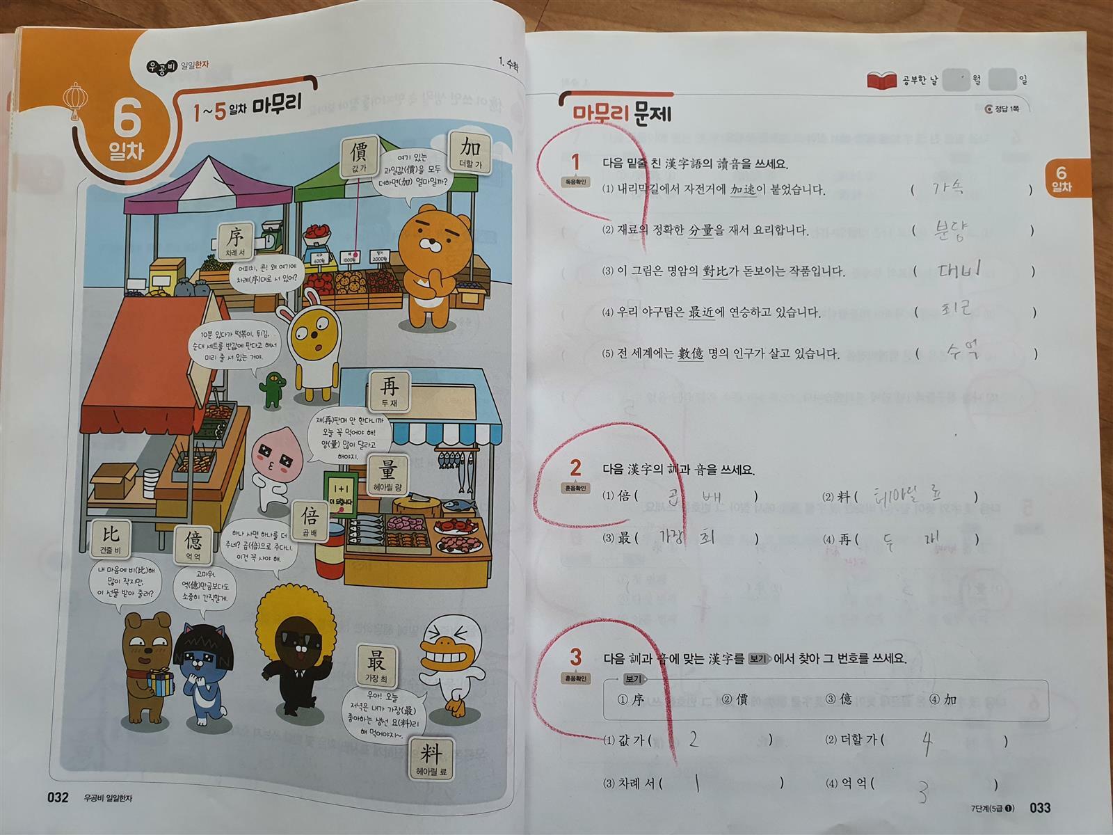 6일차에서는 5일동안 공부한 한자를 마무리 학습하는 날인데요.