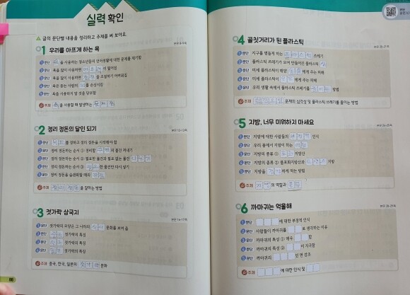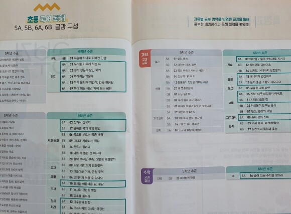 독해를 연습할 수 있는 글감들이 6학년에 배우는 초등 전과목 교과서에 수록된, 국어, 사회, 과학, 수학, 예체능에 걸친 모든 영역에 걸쳐서 나오네요.