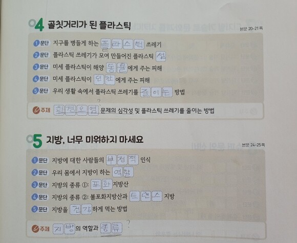 각 문단의 핵심 내용들을 정리해 보면서, 글의 내용을 제대로 파악했는지, 글의 구조가 어떤지, 또 글은 어떻게 써야 하는지 구조 파악을 하면서 알아 볼 수가 있었어요.