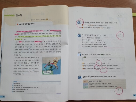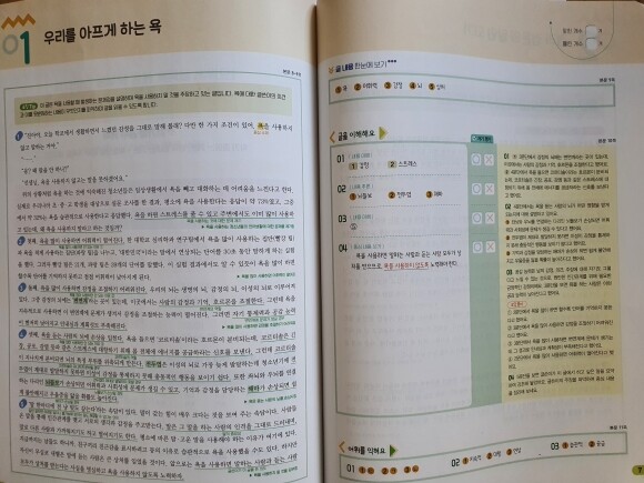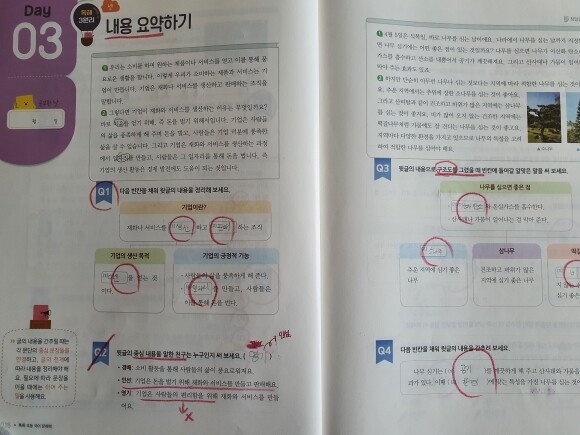 지문 내용을 더 깊이 이해 할 수 있는 것 같아 보이고, 노란색 부분에는 정답을 찾아가는 방법에 대한 상세한 설명을 해 주고, 또 오답풀이로 따로 이 보기가 답이 될 수 없는 이유가 자세히 설명이 되어서, 학생 혼자서도 답을 찾아 보면서, 자신이 직접 채점을 하고 오답을 점검 할 수가 있어서 좋았습니다.