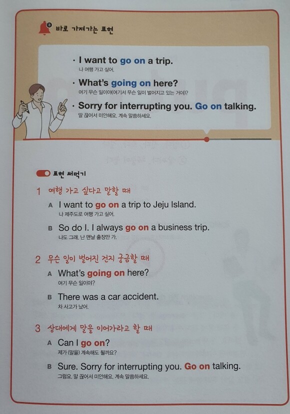 <p>그리고 암기가 오래 가기 위해, go on의 이해를 돕기 위한 설명이 자세하게 정리되어 있어서, 혼자서 공부하기에 참 좋습니다. </p>