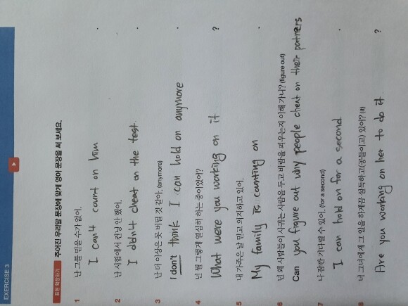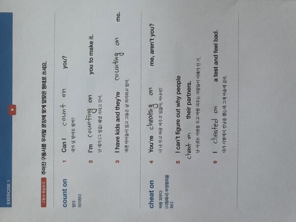 <p>처음에 구동사를 들여다 볼 때, 바로 가져 가는 표현과 표현 써 먹기에서 소리내어 읽어 봤다면, 어려움 없이 문제를 풀 수 있어요.</p>