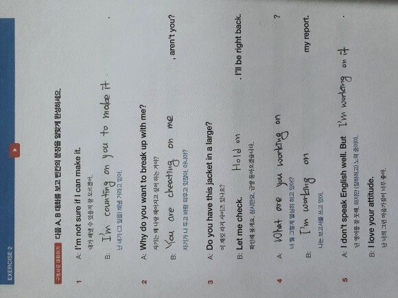 <p>구동사 대화하기는 대화문에서 빈칸 넣기로 문장의 일부분을 완성해 보게 하였습니다. </p>