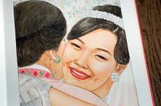 대학생이 된 엄마는 웨딩드레스를 입고 흰 꽃럼 예쁜 신부가 되어 아빠 팔에 안겨있다.