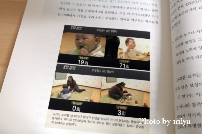 또, 아기들이 옹알이를 할때, 엄마가 쓰다듬거나 뽀뽀를 하는 등