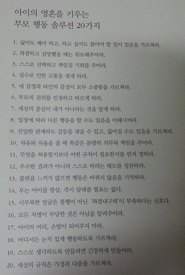 내가 바라는 이상형의 아이 모습을 나열한 영혼이 강한 아이책