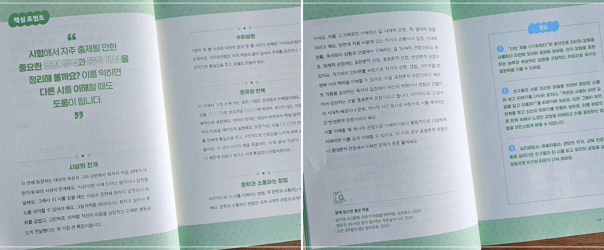 시를 시로 이해하고 다양한 방법으로 활용하며 즐기는 방법을 배울 수 있는 것 같아요.