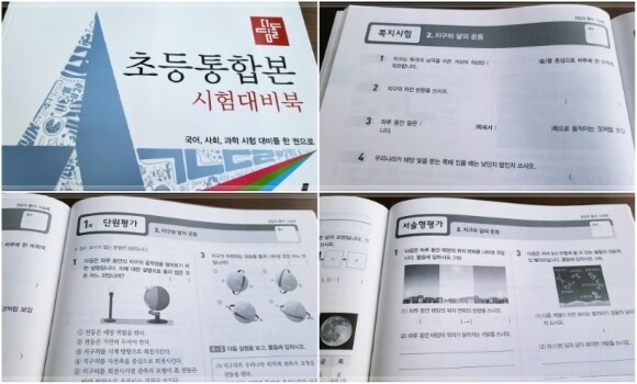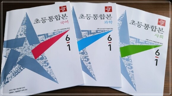 말 그대로 국어, 사회, 과학을 통합해 한 권으로 구성한 문제집이에요.