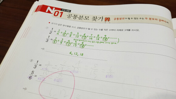 그 전에 미리 잘 익혀두어야 하는 통분 부분이네요.