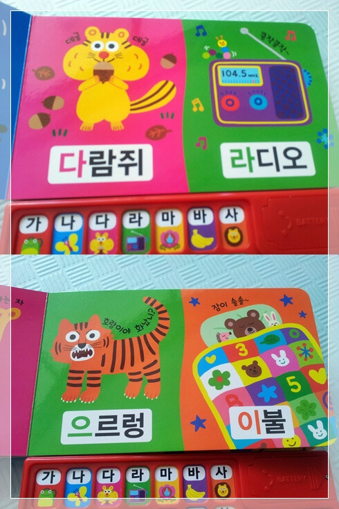 윗 부분에 책 내용이 들어가 있고 아랫 부분에 소리가 나는 버튼 부분으로 이루어져 있어요.