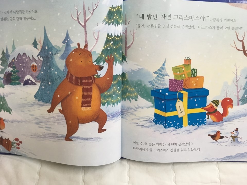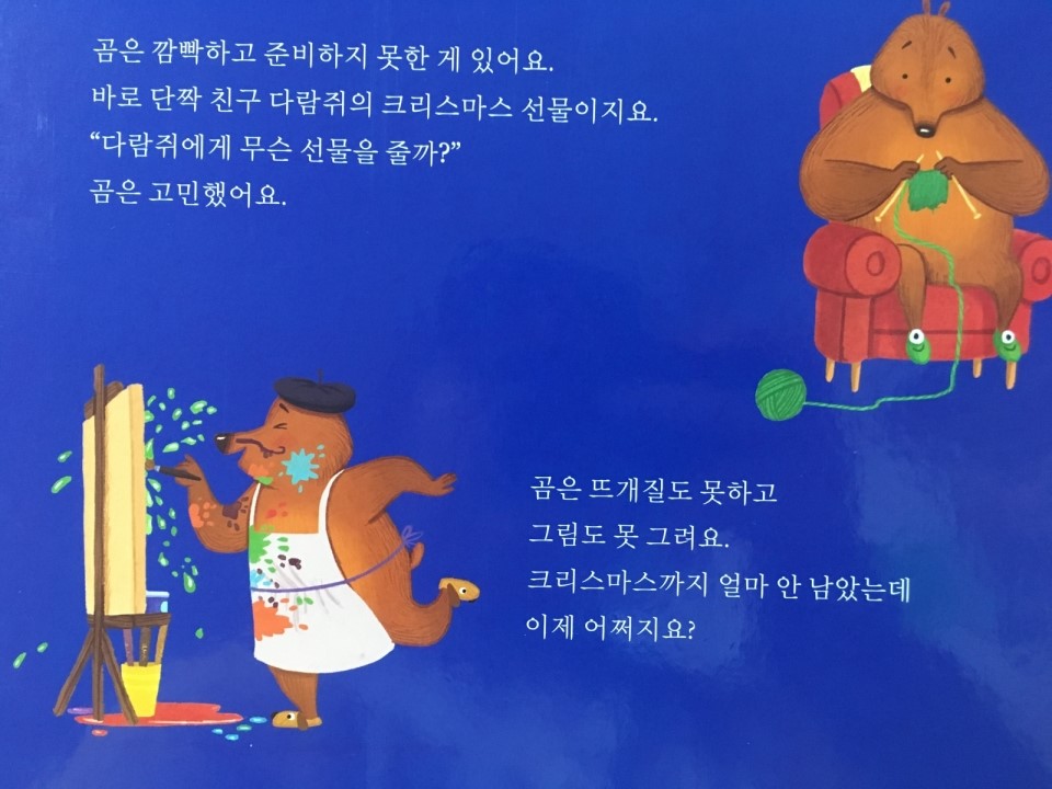 단짝친구 다람쥐의 크리스마스 선물을 아직 준비하지 못한 곰은 걱정이 많아져요