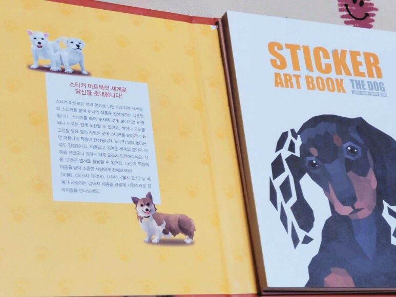 엽서북만의 장점 작아서 어떤 가방이든 넣고 다니며 카페처럼 휴식을 할수 있는 장소에서 귀여운 강아지 스티커 조각을 붙이며 잠깐의 힐링을 즐길수 있다는 점이죠.