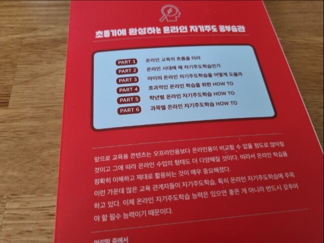 이 책은 초등학생들이 온라인 수업을 하면서 어떻게 자기주도 학습을 할 수 있는지 알려주는 책이예요. 학교를 매일 다닌다면 선생님이 수업의 진도 뿐 아니라 수업 태도, 학습 습관 등 다양하게 배울 수 있지만, 온라인 수업을 통해서는 아이가 스스로 태도와 습관들을 잡지 않는다면 제대로 배울 수 없겠지요. 그래서 저학년의 경우는 부모의 역할이 매우 중요한 것 같아요. 온라인 학습에서 학습 시간을 습관하하고 학습 태도를 올바르게 하도록 도와주어야 하고. 온라인 학습을 하고 나면 꼭 확인을 해서 제대로 이해를 했는지 피드백이 필요하다고 하네요.