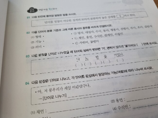 가장 기본적인 품사 부터 시작해서 어휘, 문장, 소리와 규칙, 표기법 등 전체적으로 정리가 잘 되어있어요.