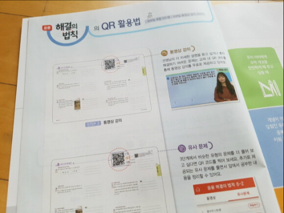 그래서 QR코드를 이용해서 동영상 강의와 유사문제를 제공해주고 있답니다.