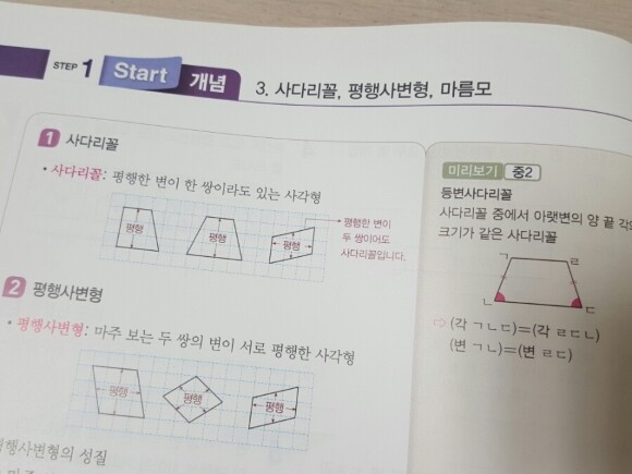 4단원에서는 다양한 사각형에 대한 내용이 나왔네요.